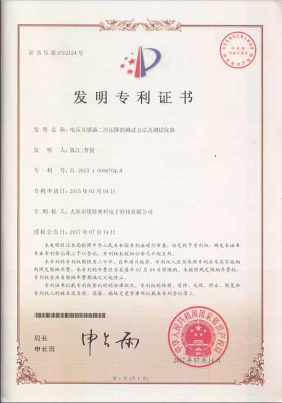 我公司獲得“電壓互感器二次壓降的測試方法及測試儀器”的發(fā)明專利授權(quán)。